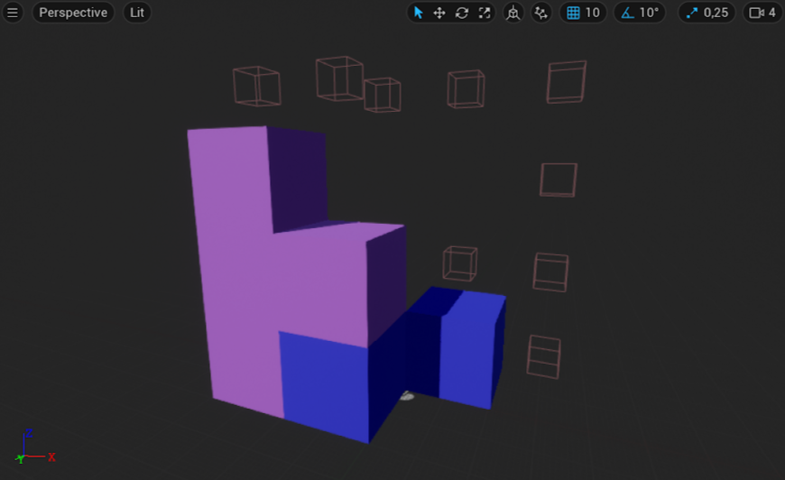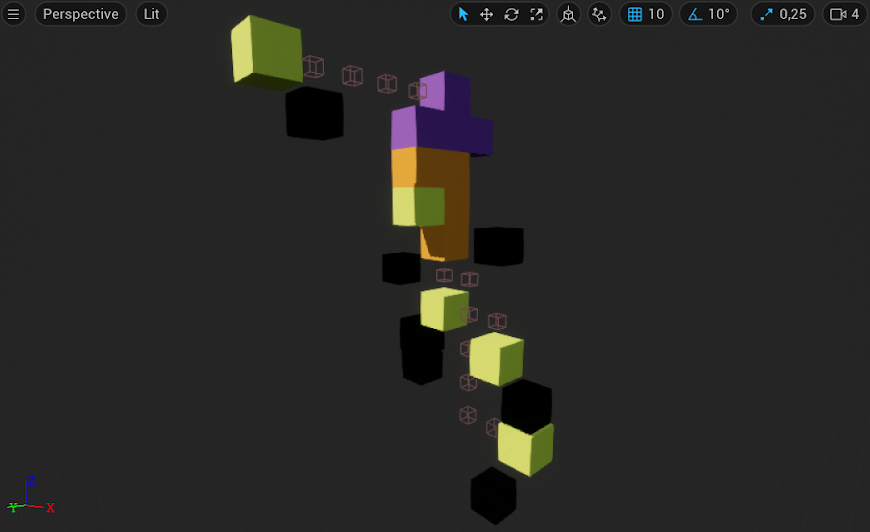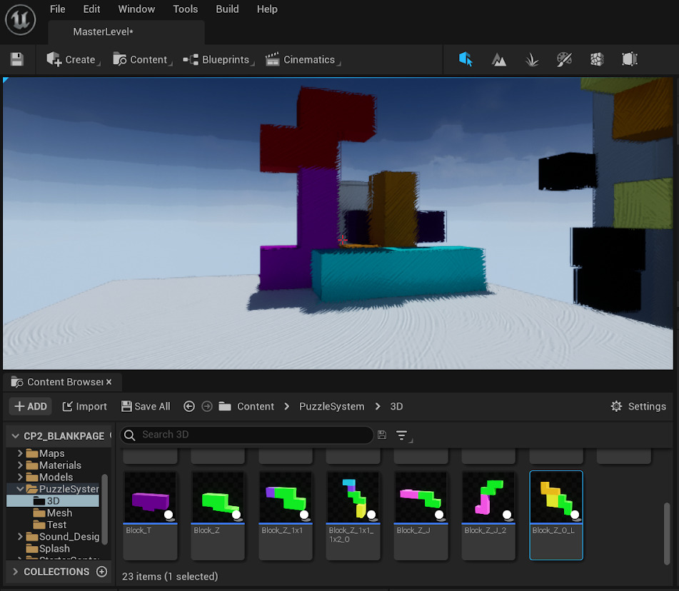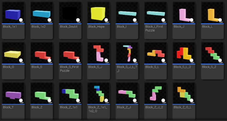 Players complete puzzles based around arranging tetris-like blocks in 3D. This allows the player to build bridges, staircases, and statues to represent the challenges of creativity.